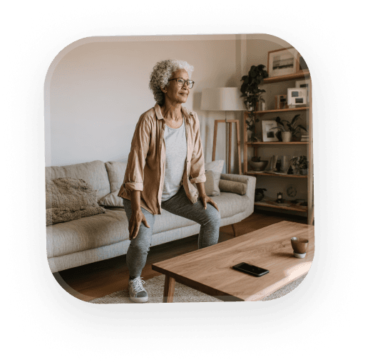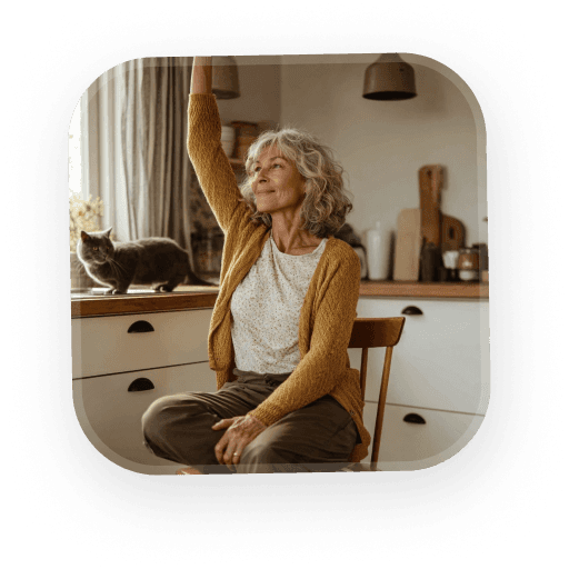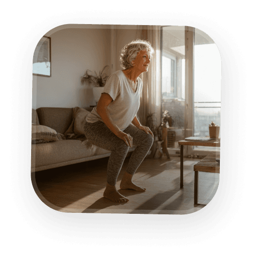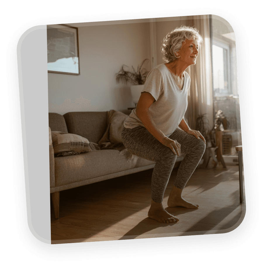 Your plan adapts to common aches, injuries, and energy levels, and the coaching always prioritises safety and comfort. You’ll be guided to move in ways that feel supportive - never pushed or rushed - and every session can be done at home, at your own pace.