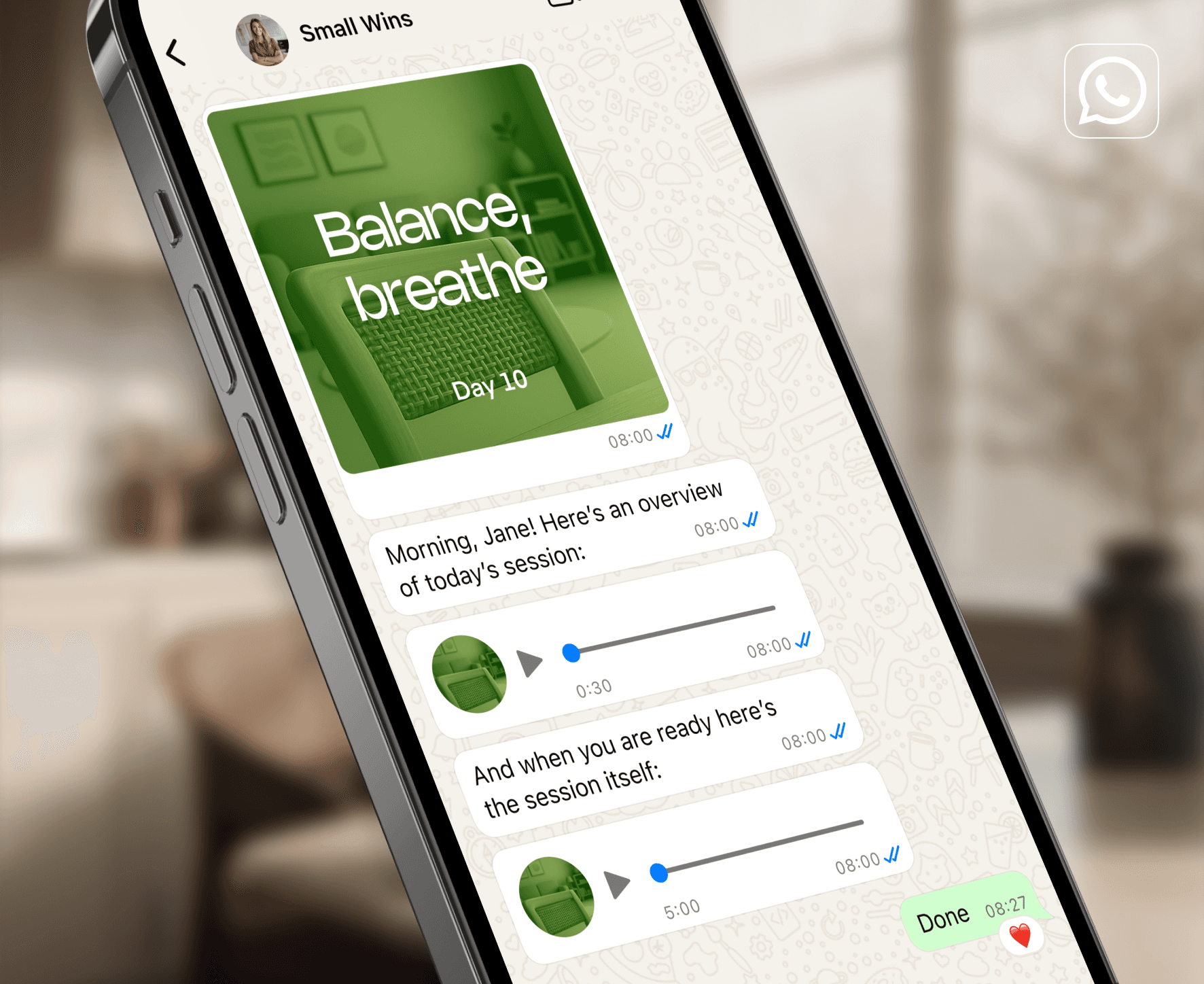 You choose the time you’d like to receive your session, and everything else is taken care of. Each day you’ll receive one clear, personalised audio session - just press play and follow along. No app, no equipment, no decisions.
